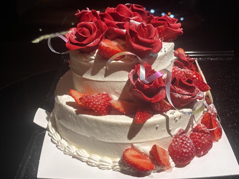 薔薇のケーキをパティシエをしているお友達