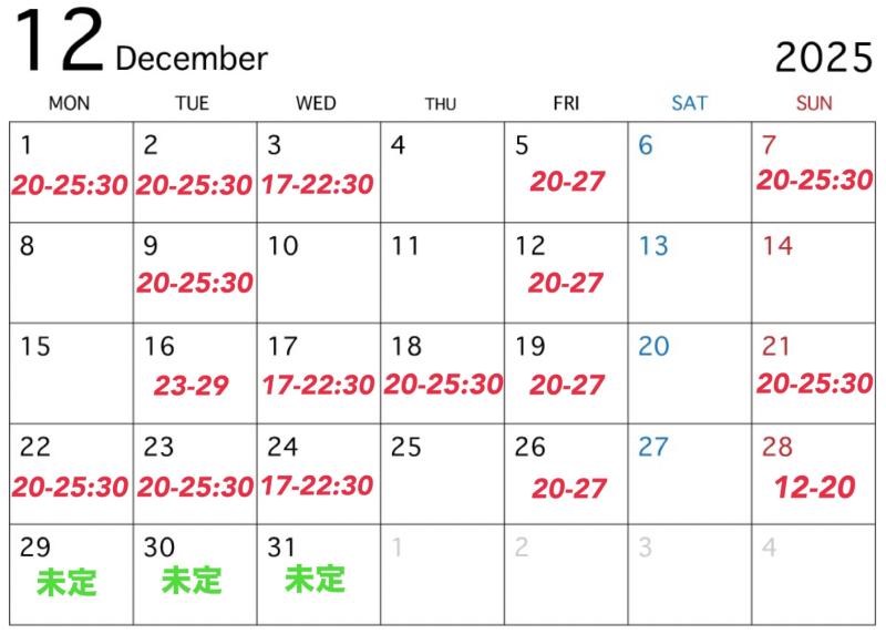 12月もよろしくお願いいたします! 2025年もあと1ヶ月。 毎月出...